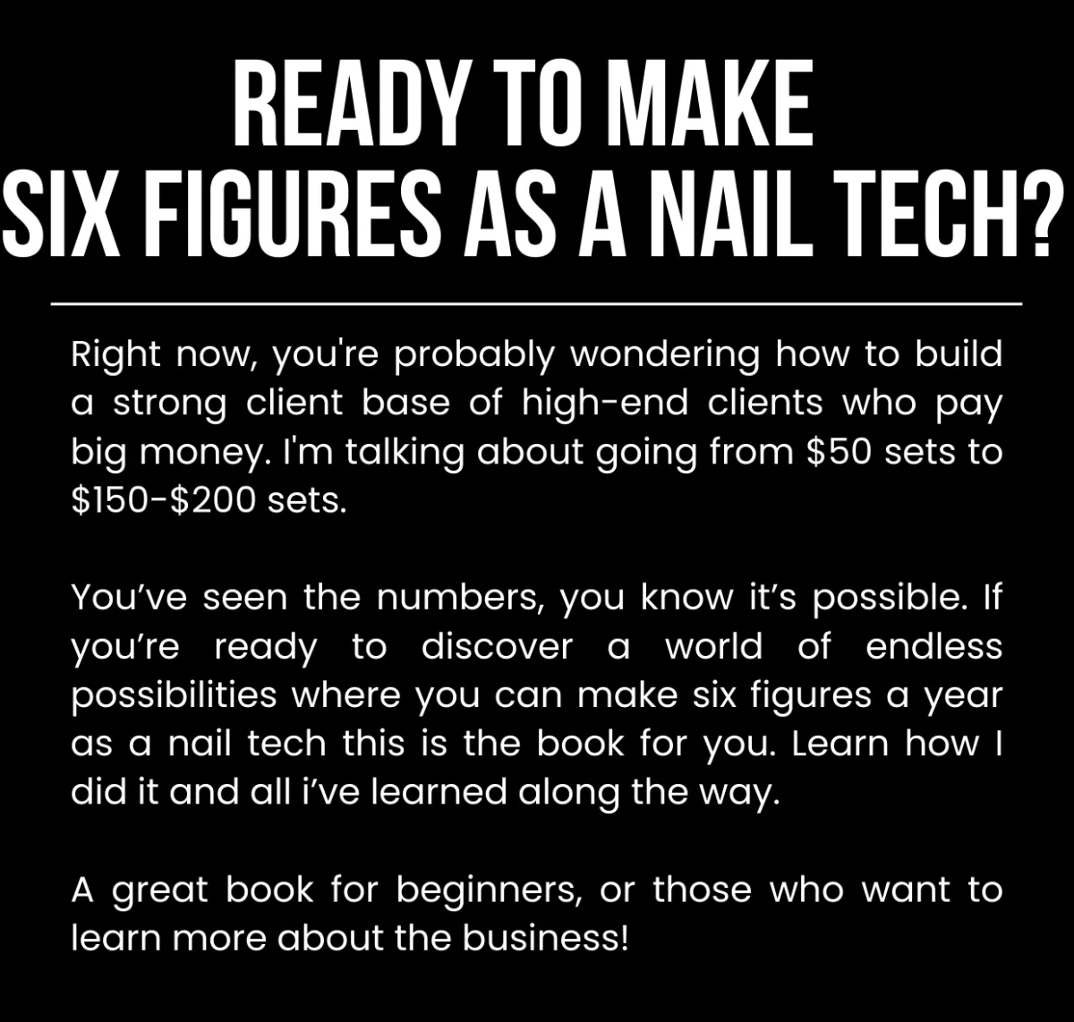 Do you want to know the exact steps needed to start your nail career, and succeed at it? No matter how much experience you have, you can use this guide to achieve success in the nail industry. I've packed this book full with the knowledge I've gained over the years. Knowledge that will take you only 32 pages to learn.